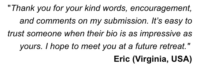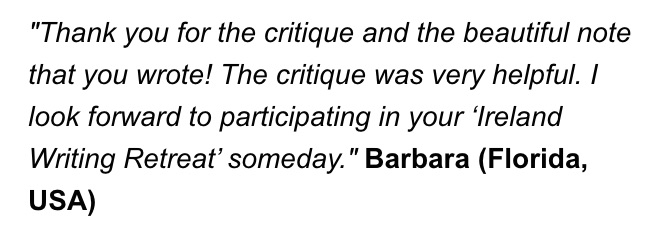 Before making your decision, please take a moment to read some of the kind messages I received already from writers who had their works critiqued by me over the last month.